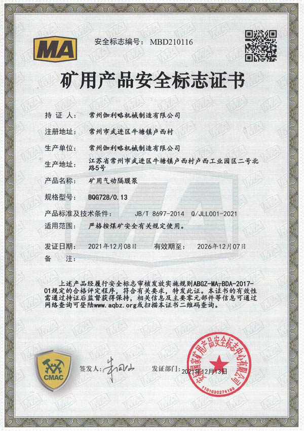 • 礦用安全標志證書-BQG728/0.13